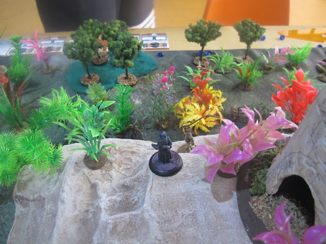 Here is my crew, I have an Intrepid Adventurer a Rugged Veteran supported by an Army unit, a VIP and a Comedy Mechanic.Here is the table I created. This is some terrain I made a few years ago when we were playing Frostgrave: Ghost Archipelago. In this episode, von Zoyten a Nazi occult scientist has stolen the Holy Grail from the US Government before it could be safely secured. Now he has raced into an ancient hidden deep in the Jungle. Superpowering the Grail would allow the creation of an army of immortal super soldiers.
